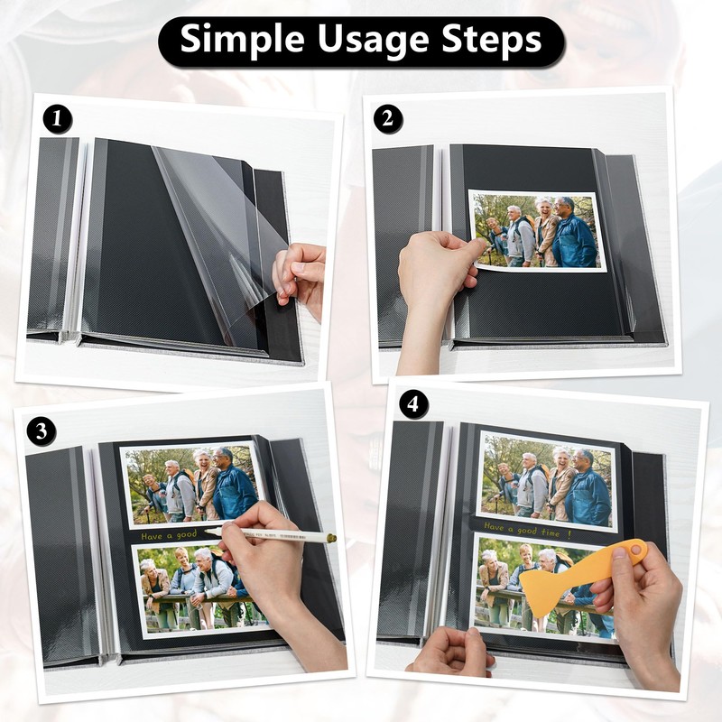 - 4. Self-Adhesive Design: The self-adhesive pages make it easy to secure your photos without the need for messy glue or tape, allowing for effortless customization and rearrangement.