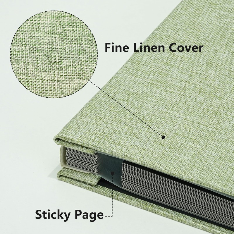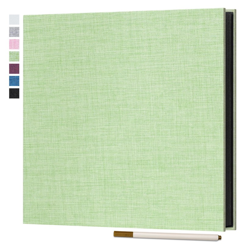Vienrose Photo Album Self Adhesive Linen Scrapbook Album for 4x6 Pictrue DIY 40 Black Inner Pages Memory Book with A Metallic Pen, 9.84" X 9.06" Grass Green