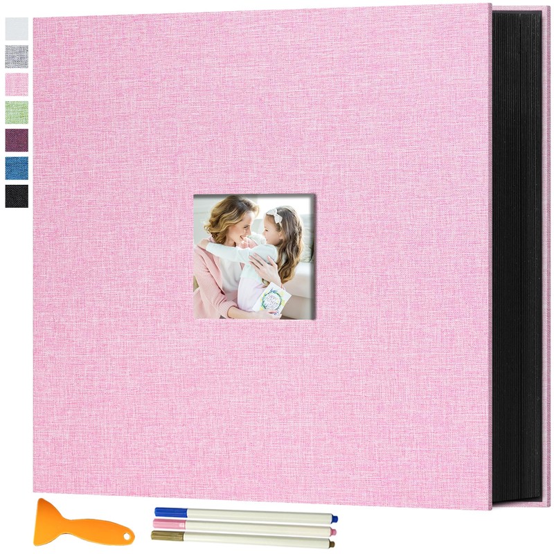 Vienrose Self Adhesive Photo Album with Window, Photo Book for 6x4 Pictures Scrapbook Album DIY Black Pages with Three Metallic Pens, 13.19 x 12.80 in 120 pages Pink