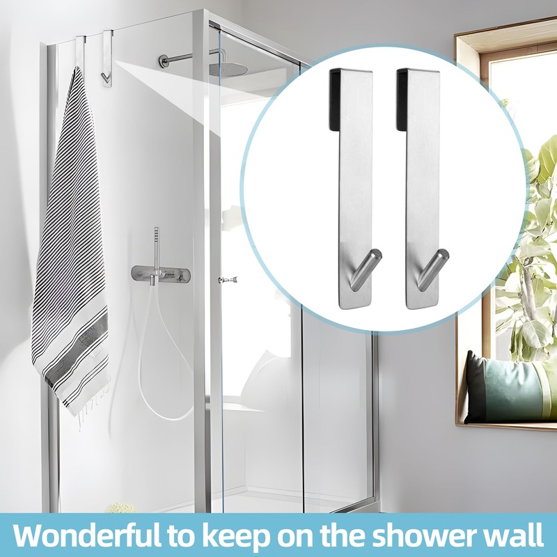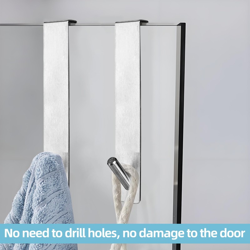- [Material]-Over door towel rail are made of stainless steel with smooth and rounded edges, hanging items are not easy to fall, sturdy and durable.Towel hooks for bathrooms won't damage the glass door.