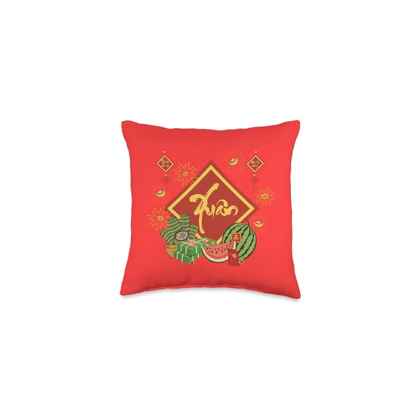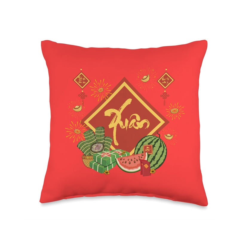 Vietnamese New Year Happy Lunar Year Calendar Xuan Spring Throw Pillow