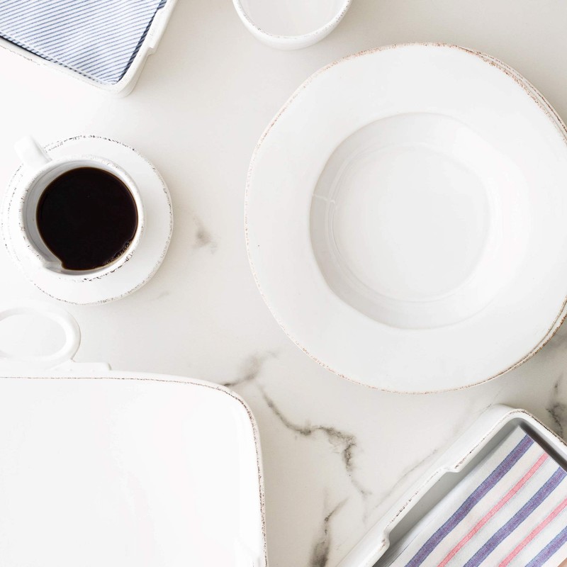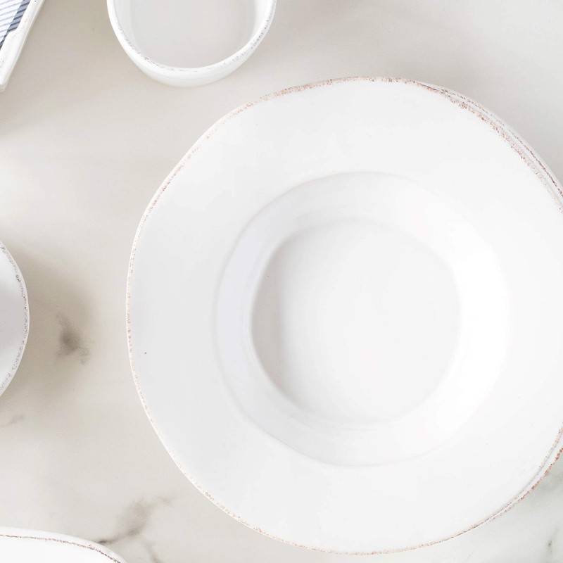 Vietri Lastra White Rimmed Pasta Bowl, Soup Salad Spaghetti Server 10.25" Stoneware Dish