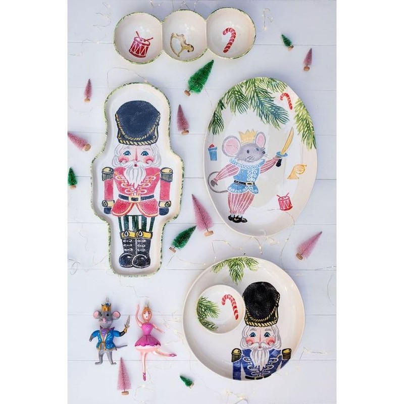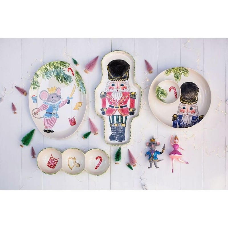 Vietri Nutcrackers Figural Mouse King Ornament Hand Painted Glass Terra Bianca Christmas Tree Decoration - 7 Inch White