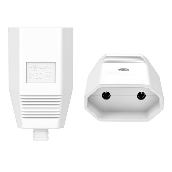 - Package contents: 2 Schuko plug couplings with IP20 certification in the format 7 x 4.5 cm.