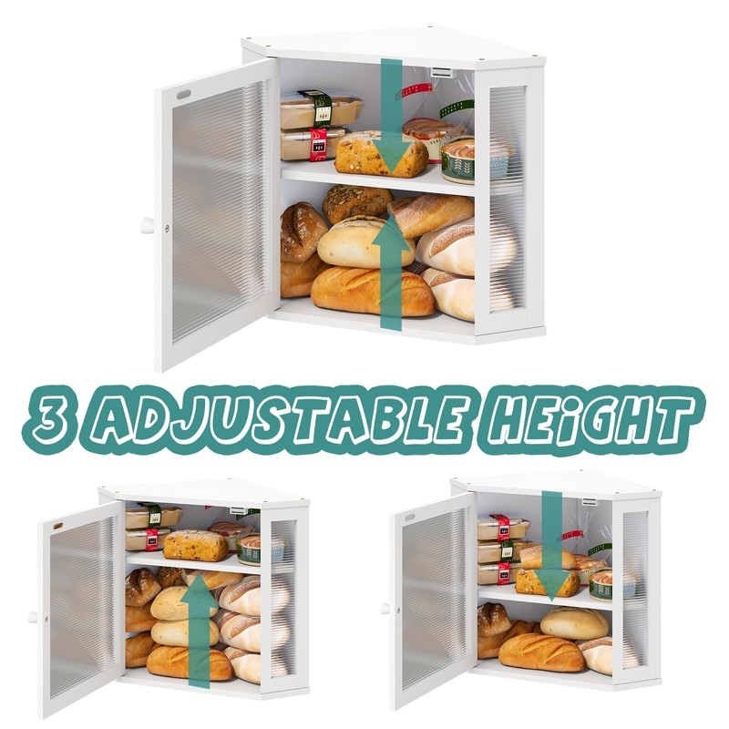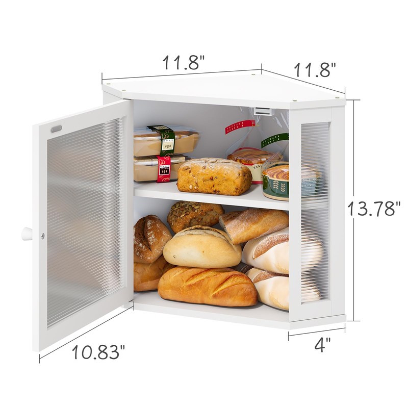 viewcare White Bread Box for Kitchen Counter, Bamboo Wood Large Capacity Bread Storage Bin with Acrylic Wavy Door Panel (White, Meduim)
