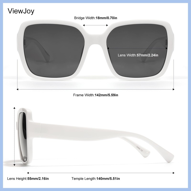 ViewJoy Womens Sunglasses Polarized Fashion Designer Square Oversized Classic Trendy Sunglasses White Frame