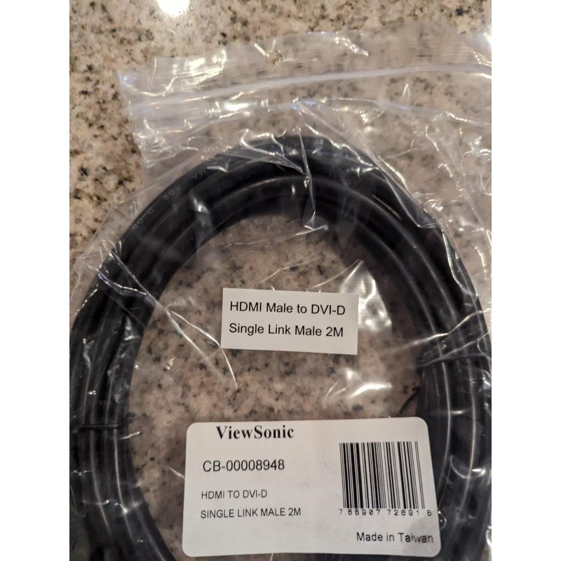 ViewSonic CB-00008948 HDMI Male to DVI-D Single Link Male Cable 2M