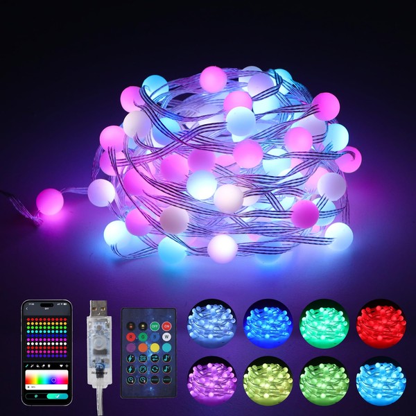 Vigdur 33FT RGB Globe String Lights, 100 Balls DIY Color Changing Fairy Lights USB Powered with Remote & APP Control, Music Sync, Christmas Twinkle Light for Bedroom Party Xmas Tree