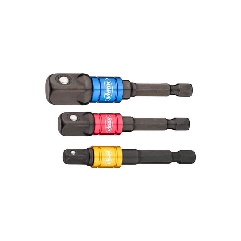 ViGOR - Socket wrench adapter set V7603/3 I attachments for tools for loosening and removing components I simple, versatile I drive: hexagonal 6.3 (1/4 inch) I 3 pieces