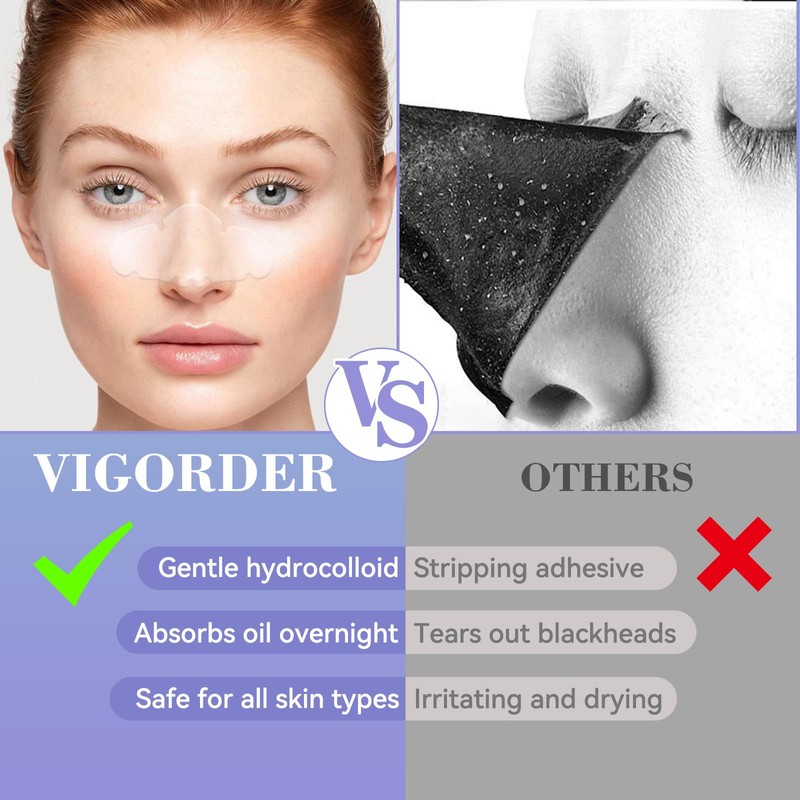 Vigorder Nose Pore Patches, Hydrocolloid Nose Patches, Targets Pimple, Pores & Oil, Acne Strips to Absorb Acne Gunk Overnight (10 Pack)
