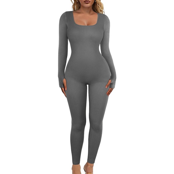 Vigorics Bodysuits for Women Full Length Women's Shapewear Bodysuits Full Body Jumpsuit Yoga Jumpsuit Maternity Overalls Grey XL