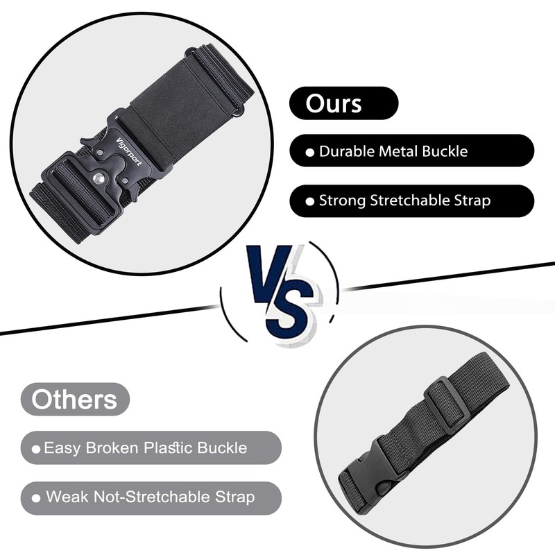 - Securely Stretch Luggage Belt: Keep bags tightly sealed and travel-ready with our heavy-duty elastic luggage strap. Featuring quick-release buckles for effortless fastening and removal, the reinforced nylon webbing combined with flexible elastic panels provides a snug, adaptable fit. It can withstand the rigors of travel while keeping your luggage secure