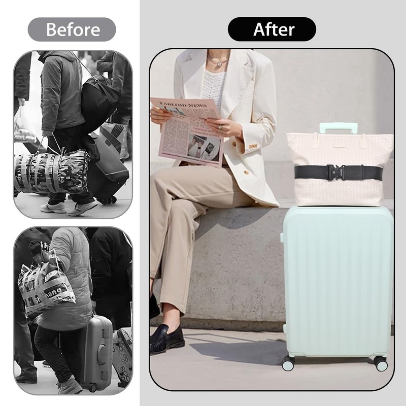- Practical & Stylish: The 2-in-1 luggage strap is both practical and stylish. It secures your carry-on luggage to the handle, so you won't have to worry about it coming loose. Whether you're a frequent business traveler or an occasional tourist, this strap is an essential travel accessory. They provide convenience, safety, and peace of mind for every trip. Packaging: Two-piece set