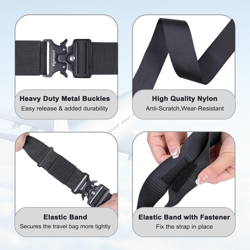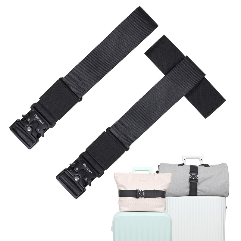 - Horizontal Luggage Strap for Travel - Secure carry-on bags. The 44'' Vigorport luggage belt can easily secure carry-on luggage directly to the handle. It is ideal for bundling purses, makeup bags, backpacks, and more, keeping your belongings neat, organized, and easily accessible