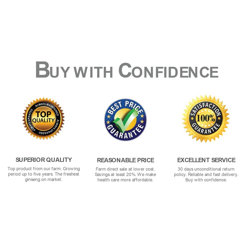 For the best interests of our customers, we only sell the quality ginseng roots from our ginseng fields located in Ontario Canada, follow stringent quality control standards, set very affordable prices and keep them stable all year round, provide convenient and secure online shopping platform, use fast and dependable global delivery services, and guarantee 100% satisfaction.