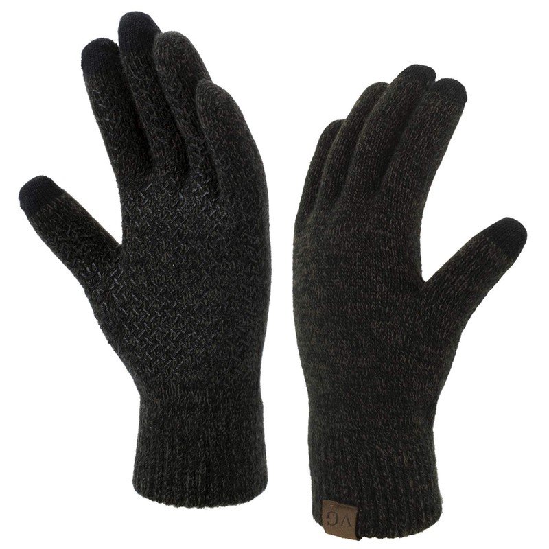 ViGrace Winter Touchscreen Gloves for Men & Women with 3 Fingers Dual-layer Touch Screen Warm Lined Anti-Slip Thermal Knit Driving Texting Glove(Dark Gray, Large)