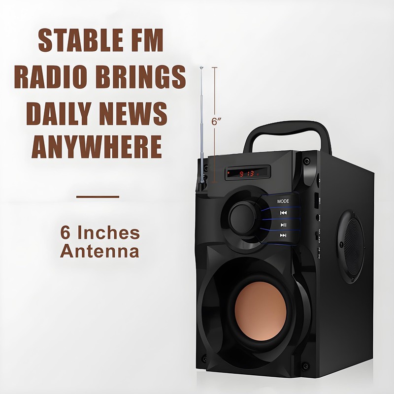 - FM Radio and Simple Control: This Bluetooth speaker supports FM radio. It has long range stretchable antenna for receiving better and stronger FM radio signal. The front digital screen displays playing modes of the speaker, and the front big rotating button adjusts the volume easily. These rich options give you free convenient using experience!