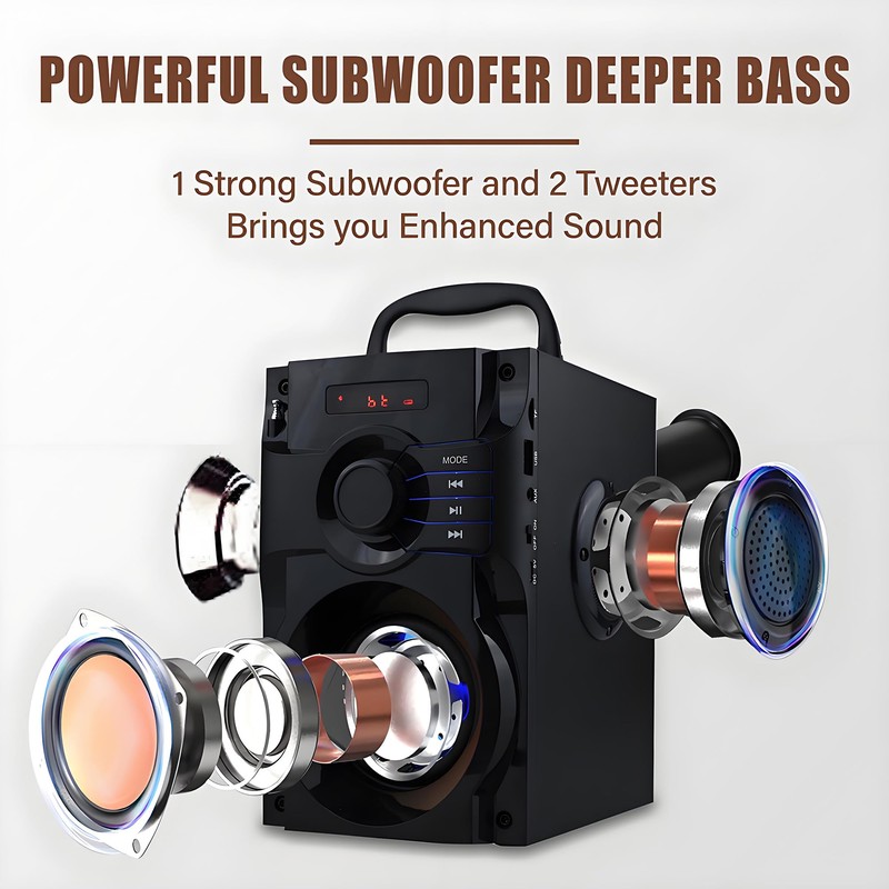 VIGROS Bluetooth Speaker, Portable Wireless Speaker with Subwoofer Heavy Bass, FM Radio with LED, Remote Control, Phone Holder, MP3 Player for Party, Christmas, Indoor Outdoor, Mobile PC