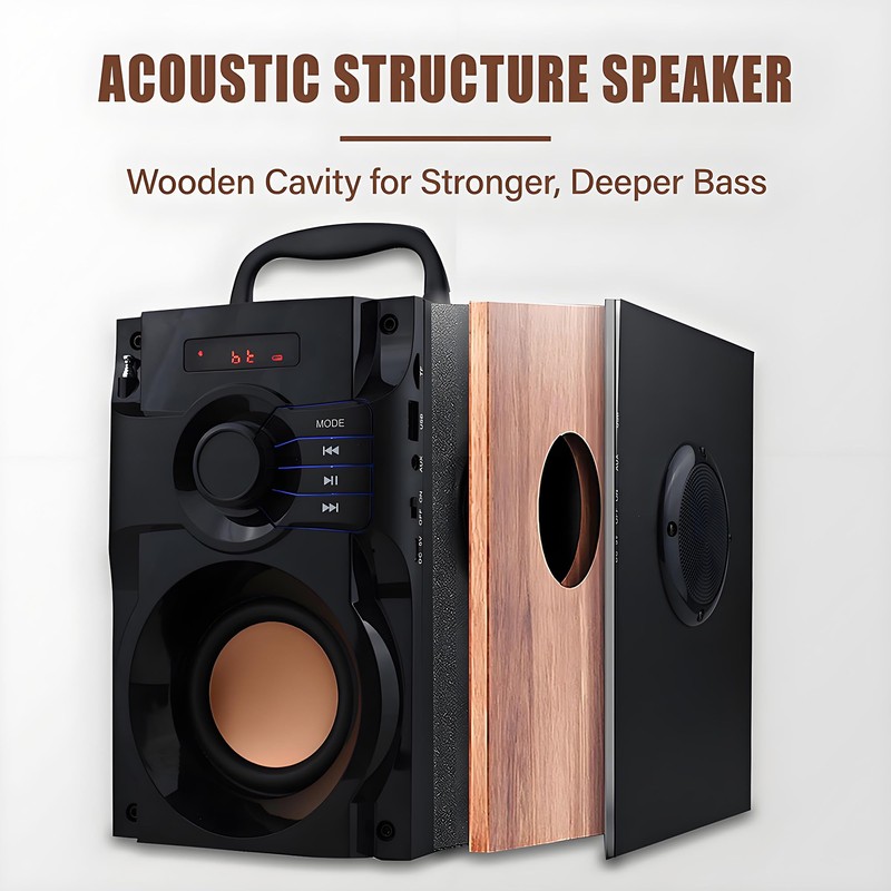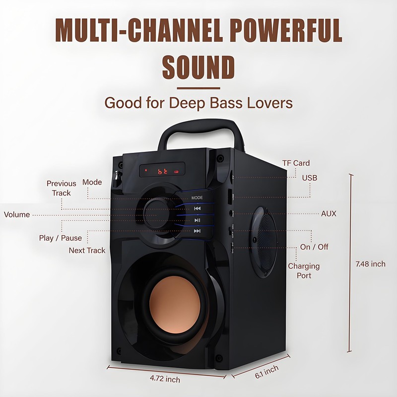 - Multiple Functions and Remote Control: It has a variety of powerful functions. It supports pop its up TF card music playback, 3.5mm AUX input, U-disk music playback. LED lights on the side indicates connection. With these functions, you can freely use the speaker outdoor or put on your desk even leaving your smartphones at home. Remote control ensures long range adjustment of the wireless speaker without using your phones.