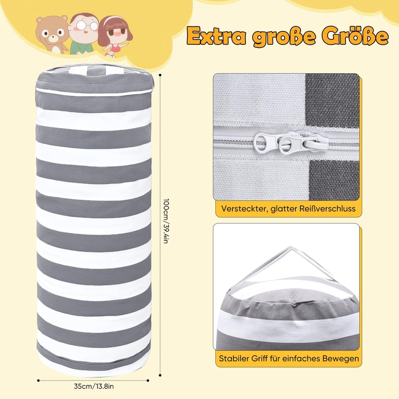 - Storage, sitting, playing, sandbag 4 in 1: This cylindrical bean bag cover can be used to store plush toys, with storage, seats, games, sandbags and other functions (the top has a handle, can be hung up), making it a multifunctional piece of furniture that can be used for a variety of purposes. Use: