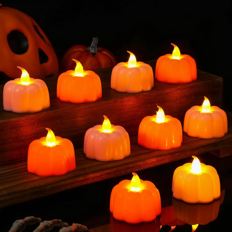 - Safe, Flameless, and Durable: the LED tealight candles are made of quality plastic, durable and reliable for long time use; The flameless feature of our pumpkin tea lights means they do not produce heat or flames, ensures that your festivities are both safe and enjoyable, making them an ideal choice for households with children or pets