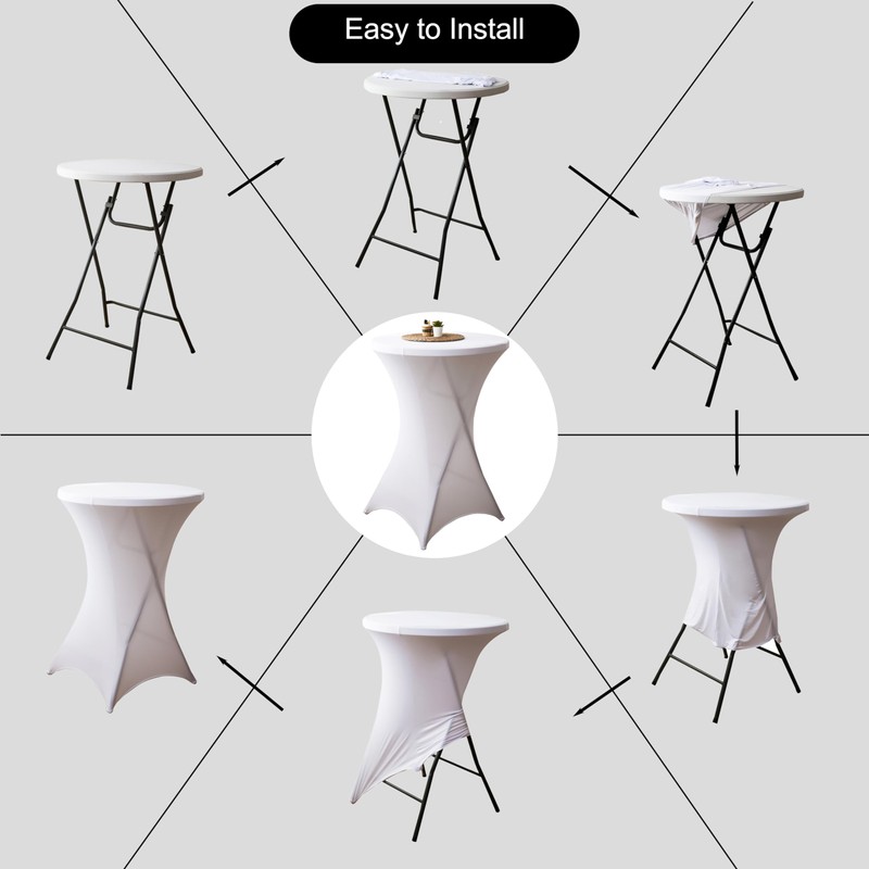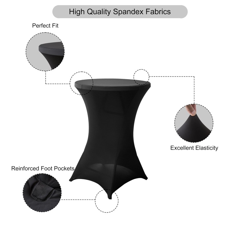 - PRODUCT SIZE: The spandex table covers designed specifically to fit 32 inch diameter and 43 inch height high boy cocktail tables, bar height cocktail tables and folding cocktail tables