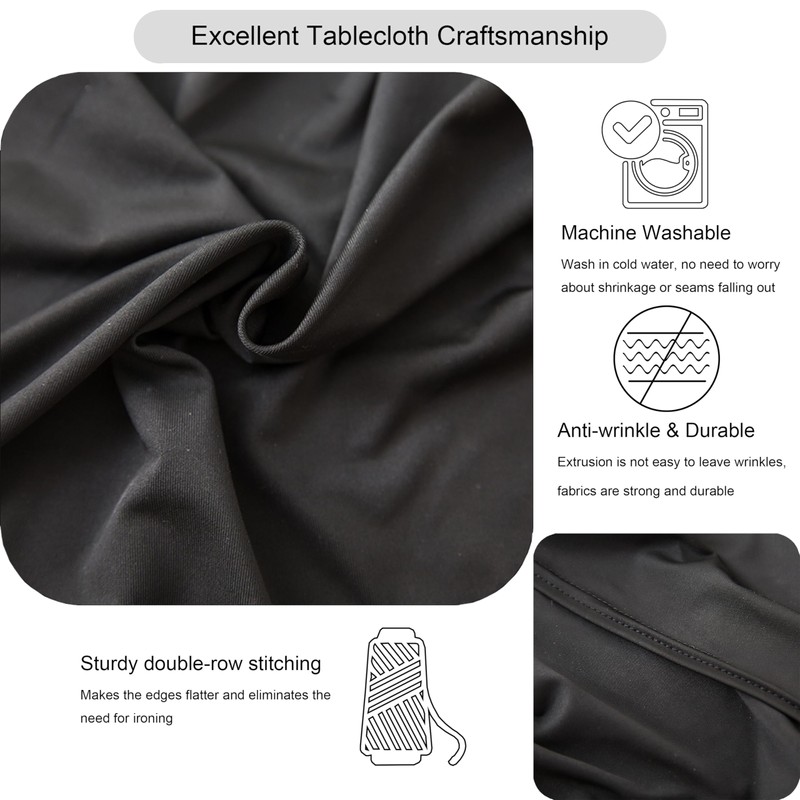 - PREMIUM MATERIA: This table cover is made of high quality stretchy spandex polyester blended fabric, which makes the tablecloth stretchier and thicker. Durable reusable washable wrinkle free and stain resistant