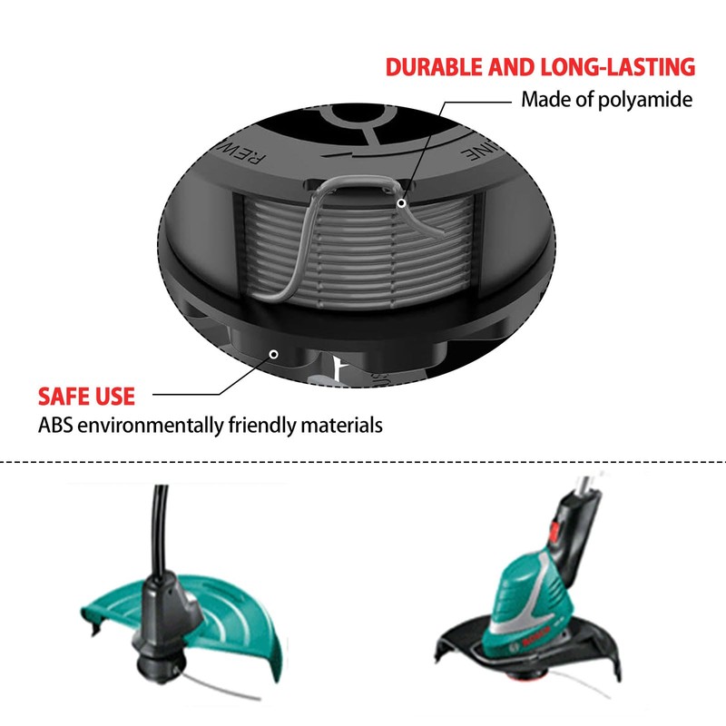 • Easy to use: this lawn trimmer spool is compatible with Bosch lawnmowers. In use, the spool can use the centrifugal force to transport the trimming thread as needed, which reduces the tedious work of manual winding of the spool and improves efficiency.