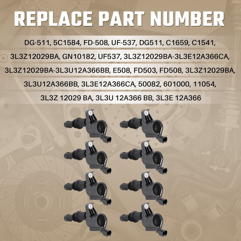 - Replaces Part Number: The ignition coil pack replaces DG-511, 5C1584, FD-508, UF-537, DG511, C1659, C1541, 3L3Z12029BA, GN10182, UF537, 3L3Z12029BA-3L3E12A366CA, 3L3Z12029BA-3L3U12A366BB, E508, FD503, FD508, 3L3Z12029BA, 3L3U12A366BB, 3L3E12A366CA, 50082, 601000, 11054, 3L3Z 12029 BA, 3L3U 12A366 BB, 3L3E 12A366