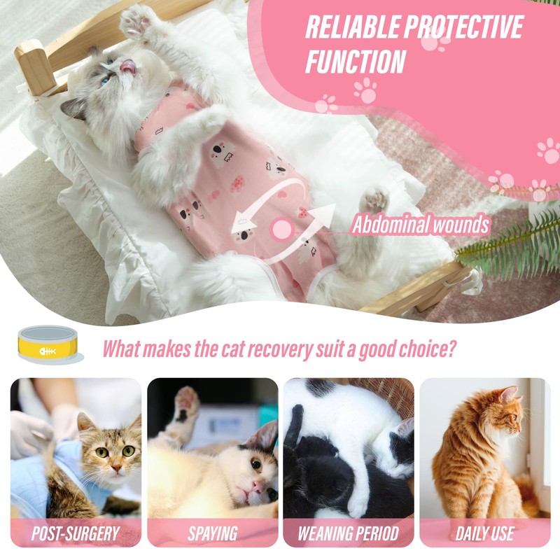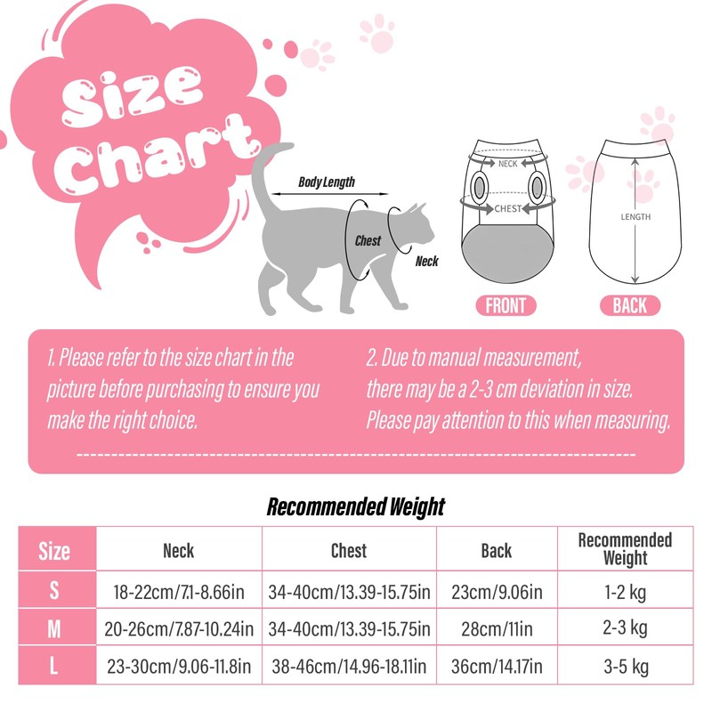 - 🎨【3 SIZES & CUTE PATTERNS FOR PETS】:Available in 3 sizes (S/M/L) and multiple prints, perfect for cat owners who seek style and practicality—PLEASE MEASURE CHEST & BACK LENGTH using our size chart before purchase. Perfect for female cats, it’s the go-to recovery solution for vets and pet parents alike.