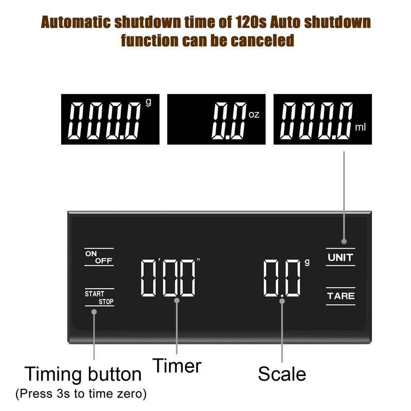 - ☕☕【Mit Timing-Funktion, Ein Guter Partner für die Kaffeezubereitung】 Sie müssen keine zusätzlichen Timer kaufen, der elektronische Kaffeewaagen-Timer verfügt über einen integrierten Timer, der bis zu 99 Minuten und 59 Sekunden messen kann. Kaffeewaage Er eignet sich sehr gut für Ihre Kaffeeexperimente und berechnet für Sie die Zeit zum Zubereiten von Kaffee. Macht das Zubereiten einfach und macht Spaß und ist ein guter Partner beim Zubereiten von Kaffee.