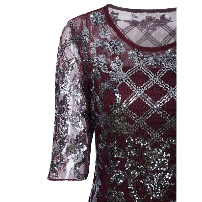 Vijiv Vintage 1920s Long Wedding Prom Dresses 2/3 Sleeve Sequin Party Evening Gown,Wine Red,XX-Large