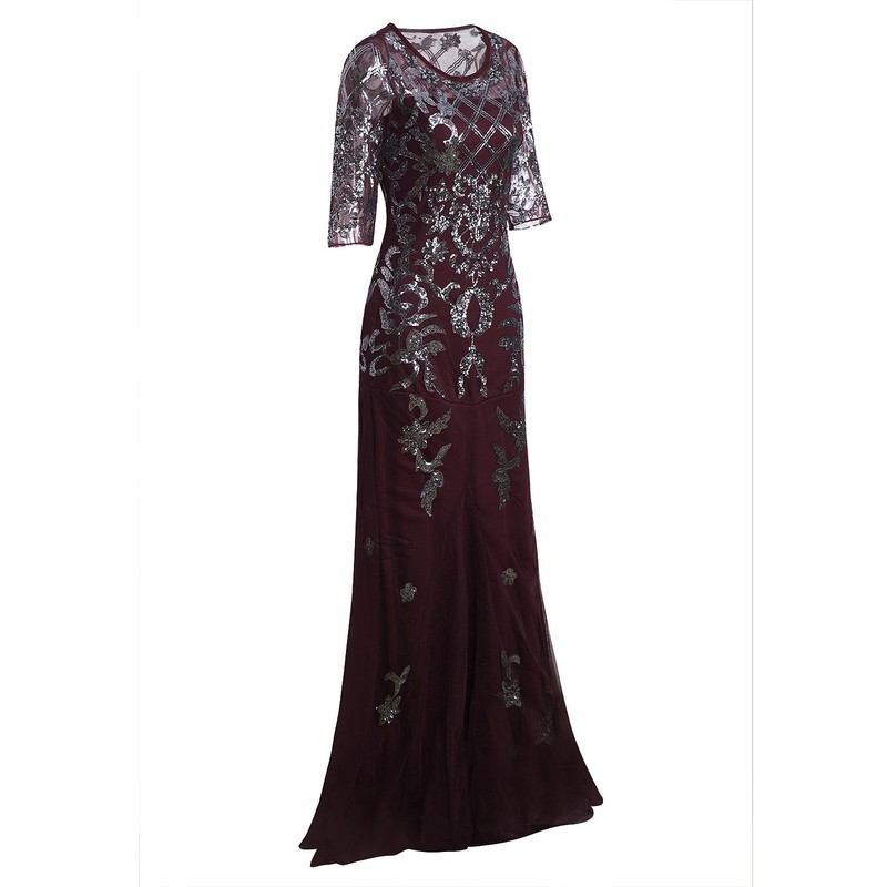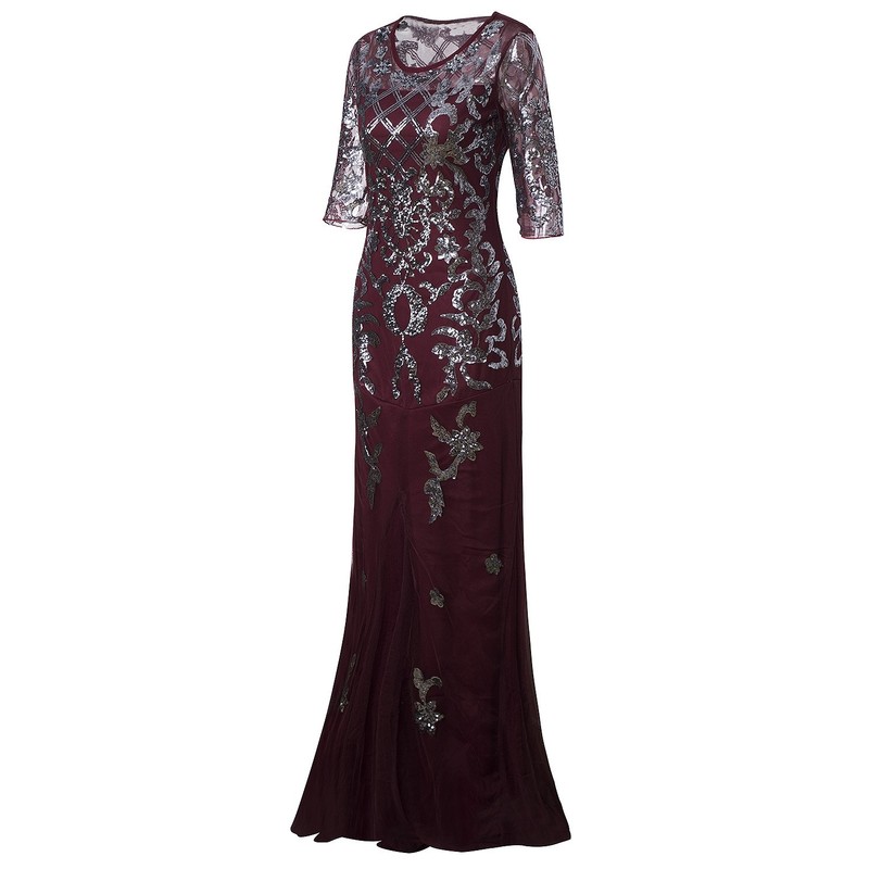 This is an elgeant 1920s long prom dress,Formal Mother of The Bride/Groom Outfits Evening Wedding Dresses with 3/4 Sleeves, Perfect for bridesmaid, mother of bride, evening party, wedding, Homecoming, prom or any formal occasion, fishtail Banquet Evening gown,A skinny fabric,stretchy,fit perfectly and feel comfortable for this formal gown.The Mermaid mesh hemline,The dress with crewneck,deco with sequins makes to paisley and flashing sparkly in the spotlight.The dazzling pattern catch everyone's eyes.The back has the same splendid pattern as the front shows,a concealed zipper hide the side of the dress,wrap up your perfect figure.The trumpet bottom part is light mesh fabric,you can dance or walk briskly.Enjoy your great wedding party/special occasion/roaring 20s with this sequin art deco gatsby long ball gown.