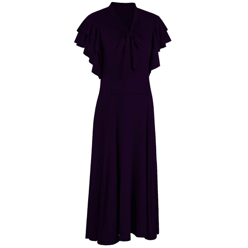 Vijiv Womens Vintage 1920s Evening Gown V Neck Long Bias Cut Sleeveless with Flutter Sleeves Bowknot Roaring 20s Great Gatsby Dresses Purple XX-Large