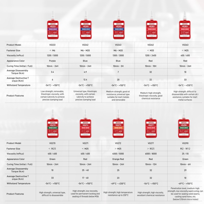 • Precision Fastening: VIKAGU threadlocker adhesive with Medium to high strength formula. Perfect for fasteners M2~M12 with average breakaway torque of 29 N.m, keeping your products safe and secure during assembly