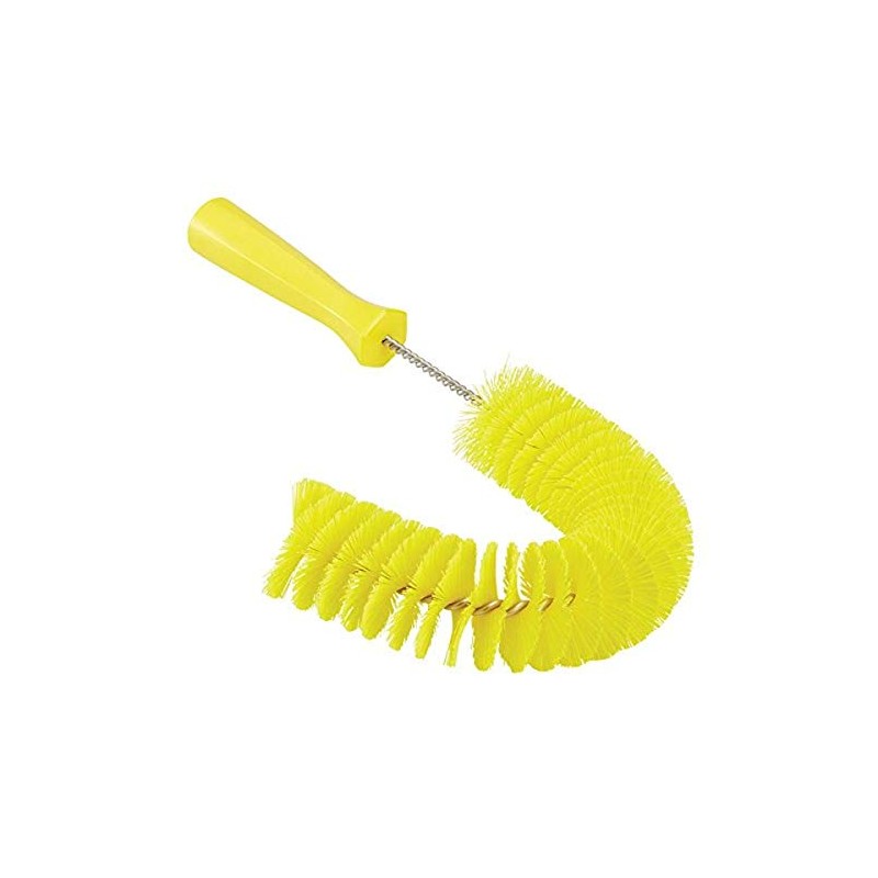Vikan 53726 Hook Brush - 14.17-Inch Curved BPA-Free Pipe, Tube, and Gutter Cleaner, Compatible with Vikan Extension Poles, Yellow