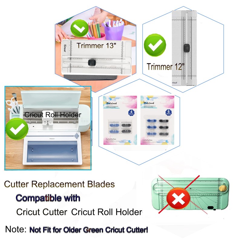 - Paper cutter replacement blade is compatible with portable Cricut trimmer 12’ 13”(33cm)/Cricut Roller Cutter (DO NOT FIT for older green cricut cutters). 2 Cutting blades and 2 scoring blade in pack to get your long last usage.