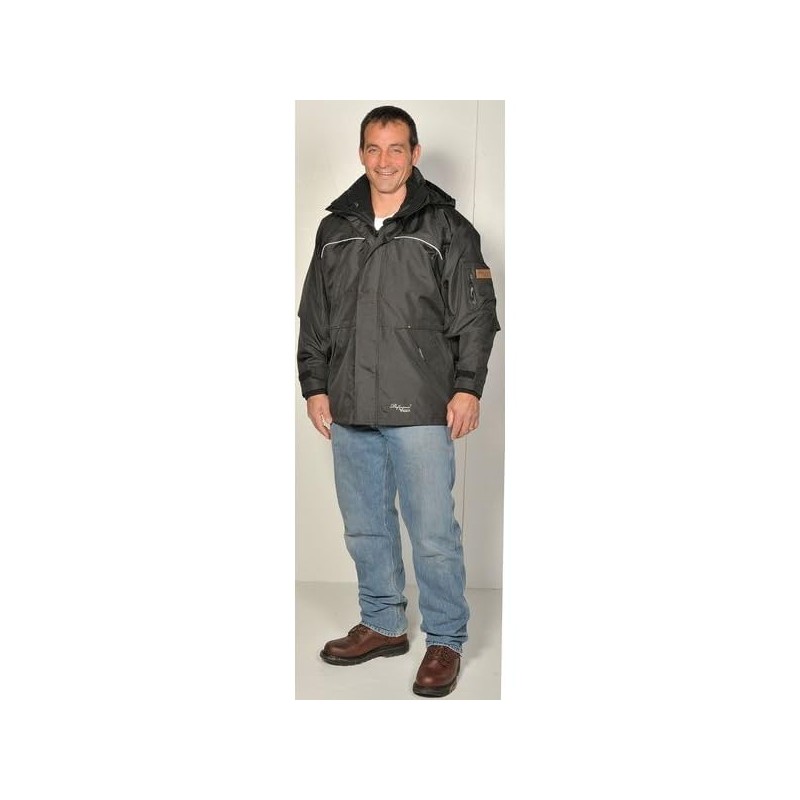 - Heavy duty zipper with double overlapping storm flap for weather protection with an adjustable 3 piece removable peaked hood