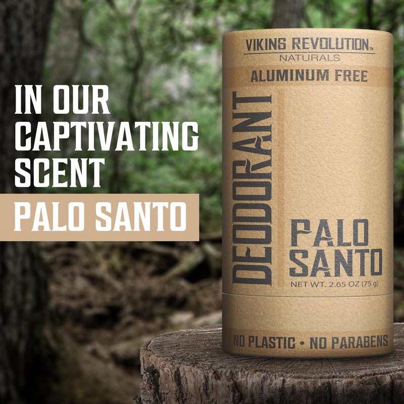 Viking Revolution Palo Santo Deodorant - Aluminum Free, Shea Butter + Tapioca Starch - Stain Free, Baking Soda Free - Natural Men's Deodorant (2.65oz)