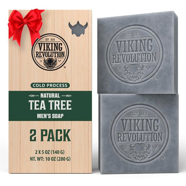 Viking Revolution Tea Tree Natural Soap for Men - Mens Soap Bar with Essential Oils Cold Pressed Bar Soap for Men - Nourishing Mens Bar Soap with Coconut Oil, Shea Oil, Almond Oil (2 Pack)