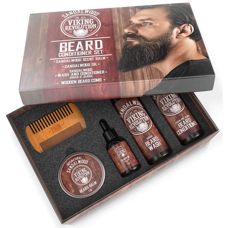 Viking Revolution Ultimate Conditioner for Men's Beard Grooming - Softens, Smoothes and Soothes Beard Itch- Contains Wash, Conditioner, Oil, Balm and Comb- Sandalwood Scent