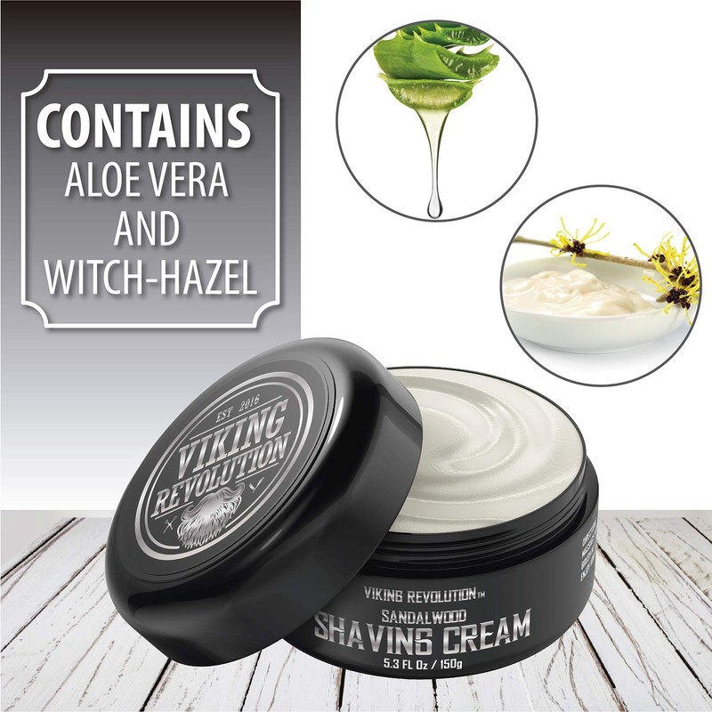 Viking Revolution Viking Revolution Luxury Shaving Cream for Men- Sandalwood Scent - Soft, Smooth & Silky Shaving Soap - Rich Lather for the Smoothest Shave - 5.3oz
