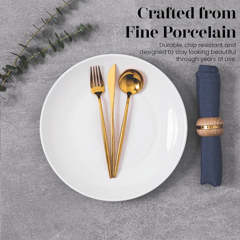 - FINE PORCELAIN: Our stylish ceramic plates are carefully crafted and designed to be elegant and functional at once. These dishes are durable enough for everyday use, pretty enough for holidays and entertaining. Durable materials will not easily dull, fade, chip, or scratch – so make them yours today and get ready for the compliments!