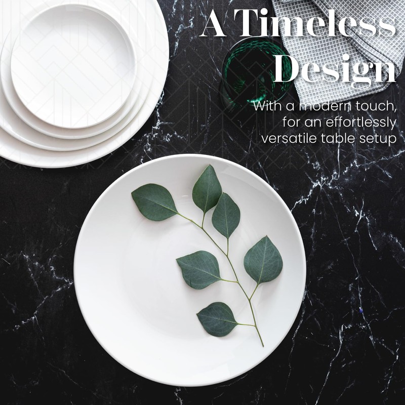 - TIMELESS DESIGN: With their round shapes, smooth and gentle styling, and warm white color, these dinner plates deliver a fresh and modern design that is as versatile as it is timeless. Effortlessly blends with your existing dinnerware and dining décor.
