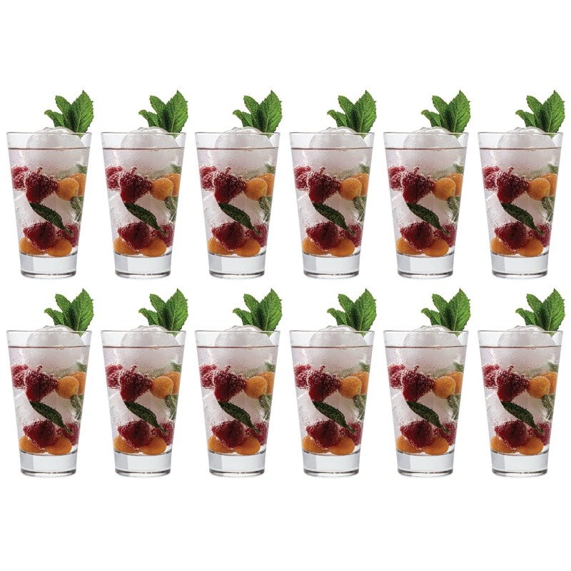 - HOLDS 10.7 OUNCES: With a capacity of just under 11 ounces, these glasses are the perfect size for your morning glass of juice, your lunchtime drink of water, and your after-work cup of milk. The wide top lets you add plenty of ice to your drink, and they come in a set of twelve, so you won’t run out.
