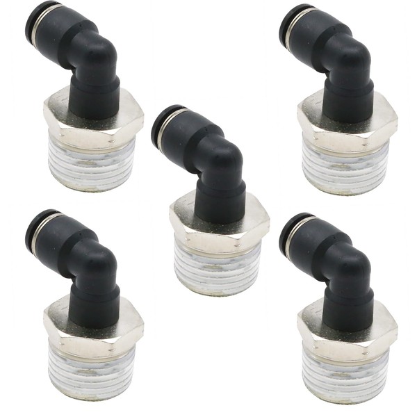 VIKKSAER 5 Pcs Hardware Male Elbow Push to Connect Fittings, 90 Degree Air Push Connect Fit Lock Fitting, for Pipe Connection (1/4" OD x 1/2" NPT)