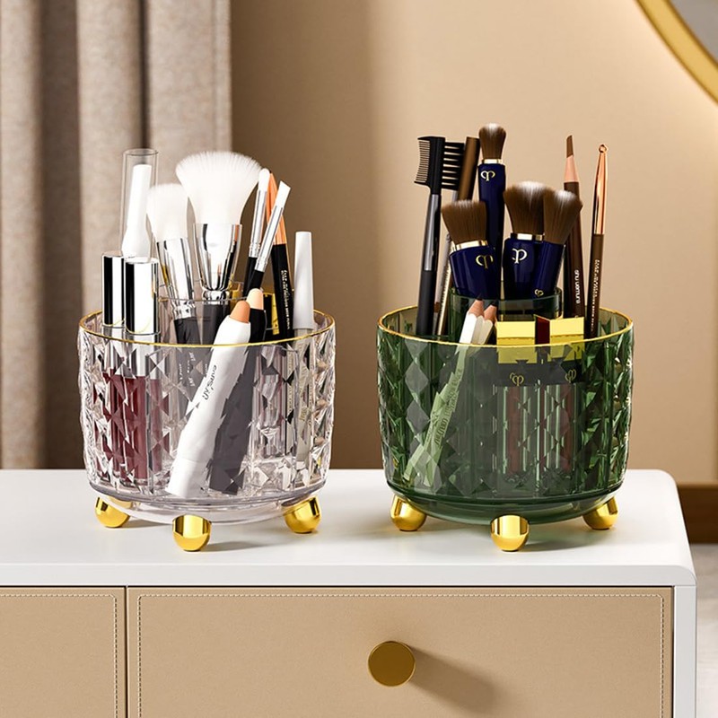 - MULTIFUNCTIONAL DESK ORGANIZER This rotating storage box is perfect for holding pens, cosmetics, bathroom essentials and toiletries.
