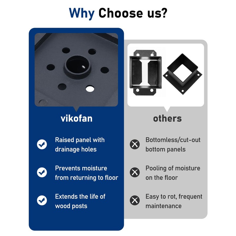 - Raised Isolation: Design with 2.5mm thick columns lifts posts off the ground, preventing moisture intrusion. Protects against rot caused by water exposure, extending post life and enhancing overall safety