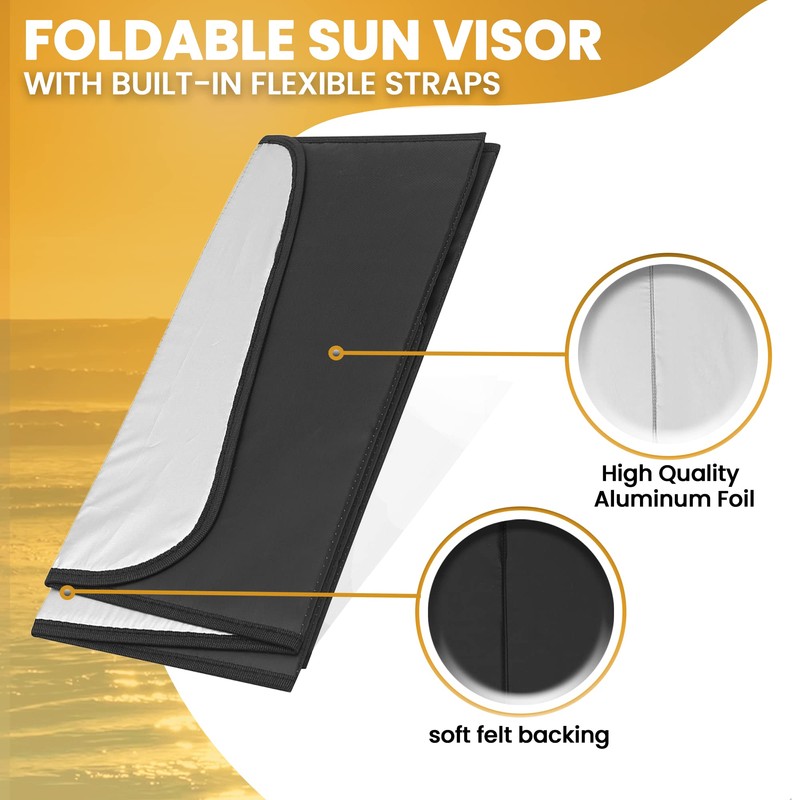 - FOLDABLE SUN VISOR - This is a sleek, compact, lightweight, and foldable Jeep Wrangler sunscreen. It also has built-in flexible straps for easier storage and better portability.