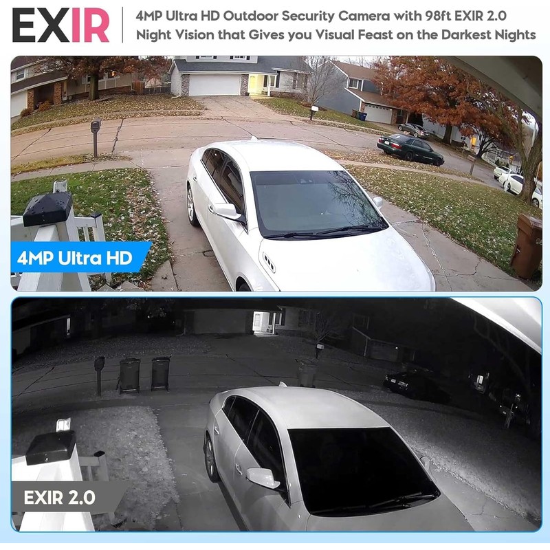 - ✨【Clear and Real-time Surveillance Camera】The security camera outdoor has 98ft infrared night vision range, even in low-light environment, you can see the video clearly and don't miss any details, the built-in microphone can capture the sound of the surrounding environment to make the video more realistic.3D digital noise reduction to provide clear images with less noise in low-light surveillance scenes compared to conventional camera.
